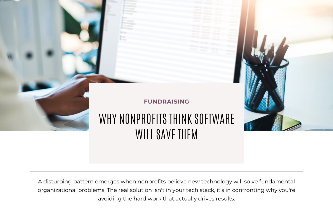 A disturbing pattern emerges when nonprofits believe new technology will solve fundamental organizational problems. The real solution isn’t in your tech stack—it’s in confronting why you’re avoiding the hard work that actually drives results.